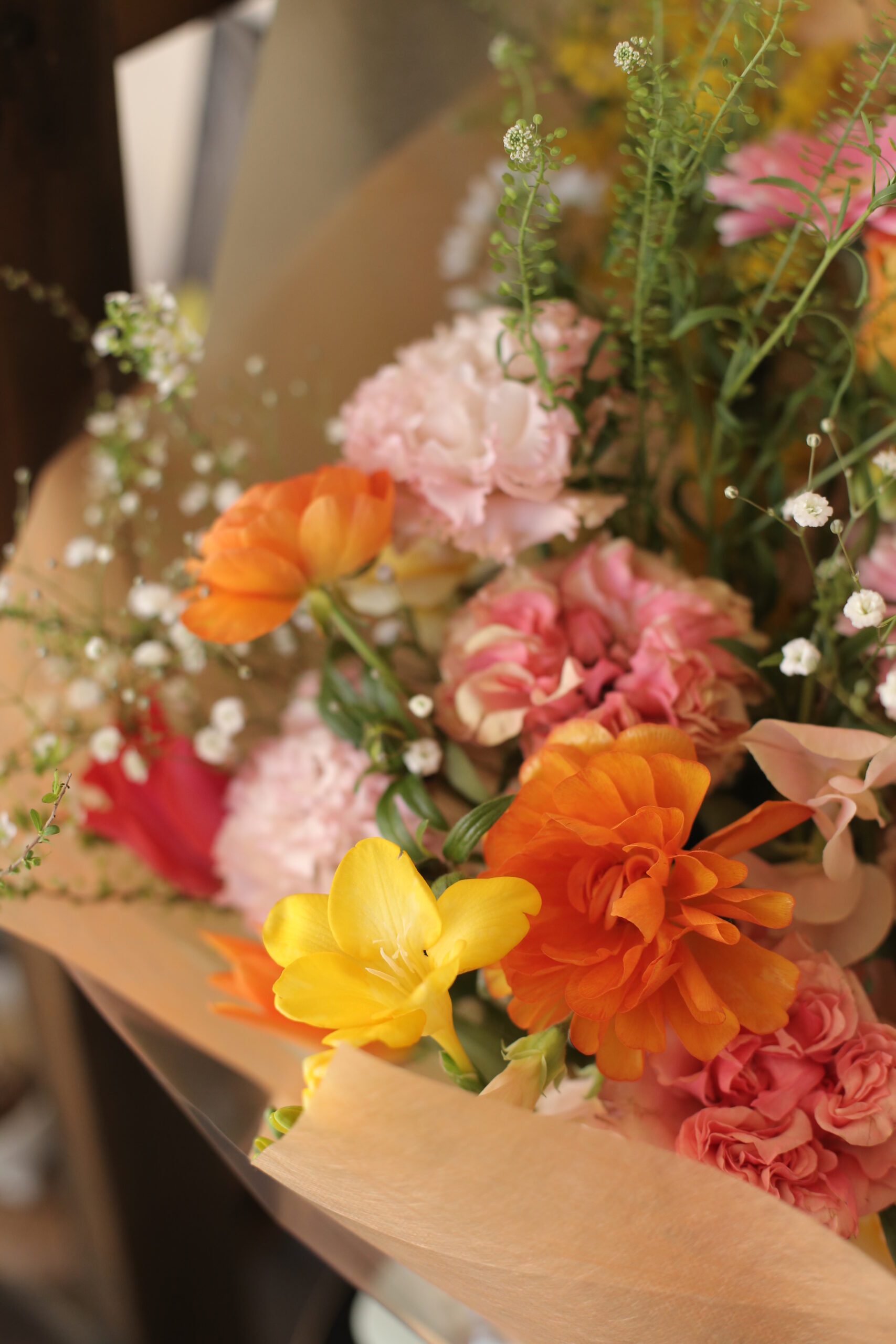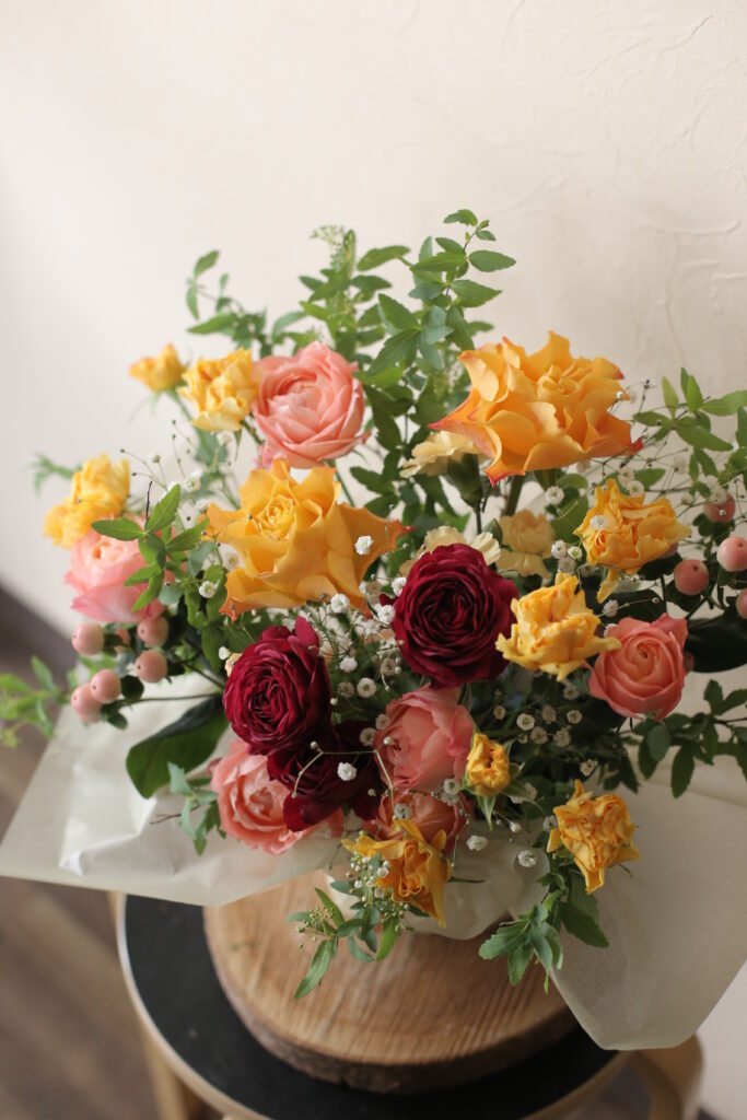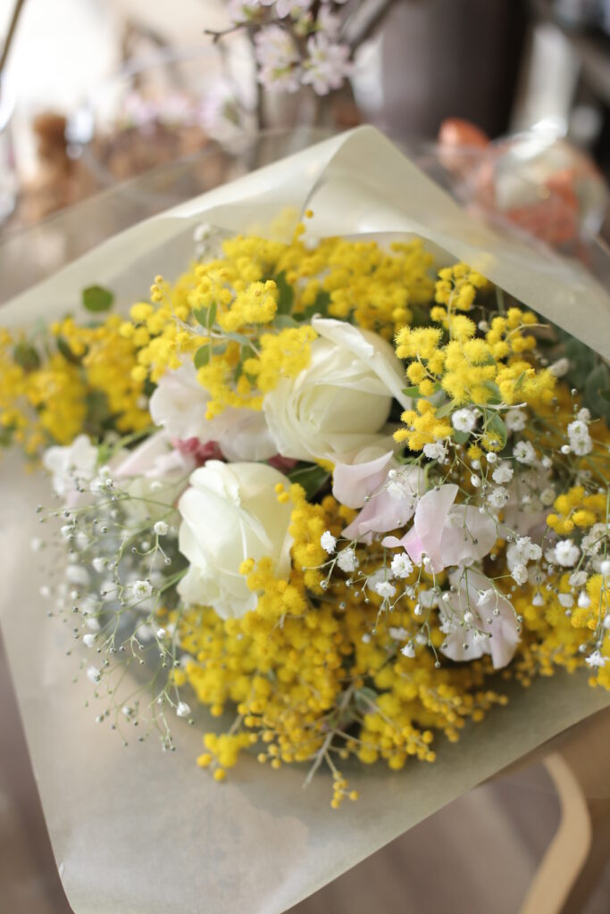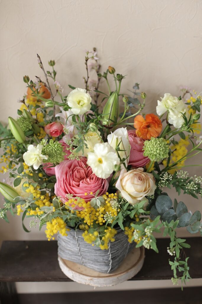 春は 明るい感じで! とのオーダーが圧倒的に多いです。明るいイメージの代表 黄色系ですが、合わせる色によって雰囲気も変わってきます