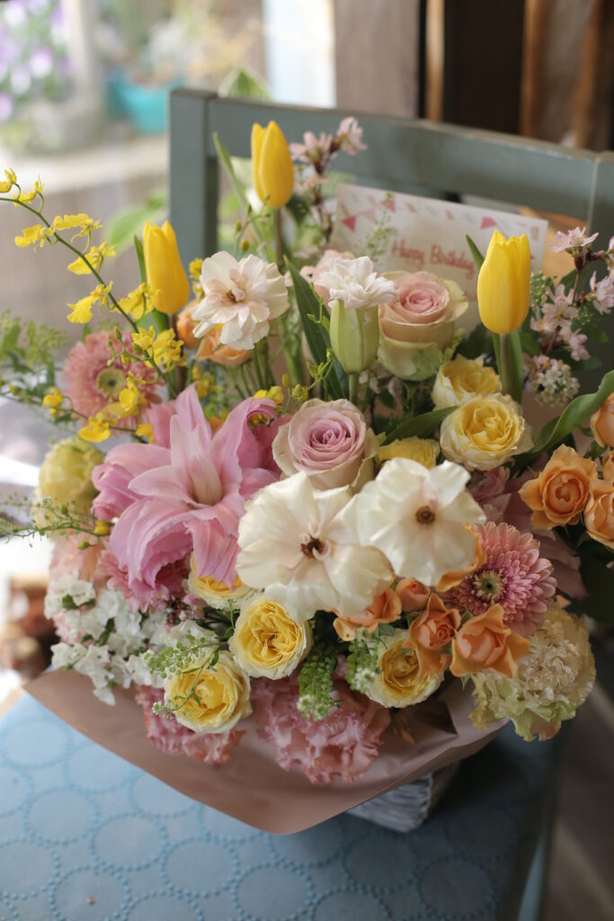 演奏会、お彼岸、還暦、お誕生日など、御用途やご予算に応じてイメージをお伺いしてアレンジいたしました。
