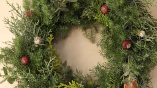 クリスマスワークショップのご参加された方々の作品です。ラコリーヌでは、リース、ツリー、スワッグの中からお作りになりたいデザインを選んでいただけますリースは土台となる蔦から選んでいたきます。添える常緑樹は、スギやヒバ、モミなど数種類木の実もた...